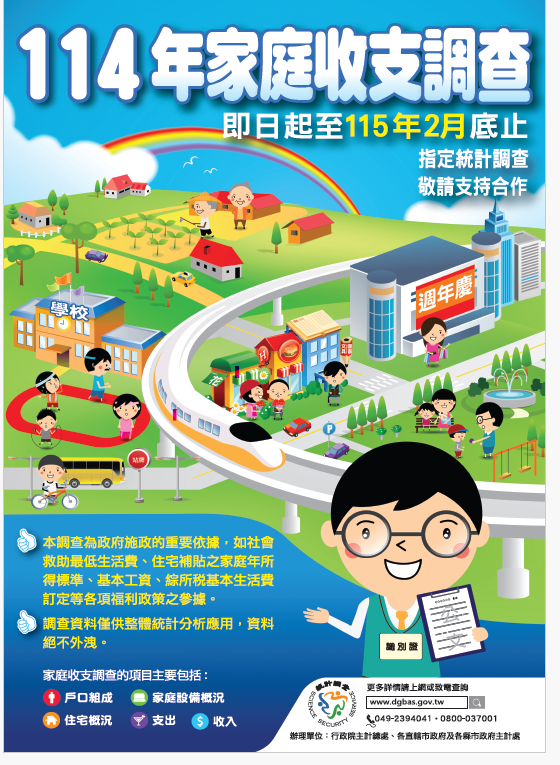 > 臺中市114年家庭收支訪問調查起跑囉! 實地訪查期間:114年12月1日至114年2月28日