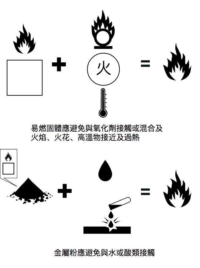 1. 易燃固體應避免與氧化劑接觸或混合及火焰、火花、高溫物接近及過熱。