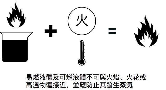 注意事項:易燃液體及可燃液體不可與火焰、火花或高溫物體接近,並應防止其發生蒸氣。